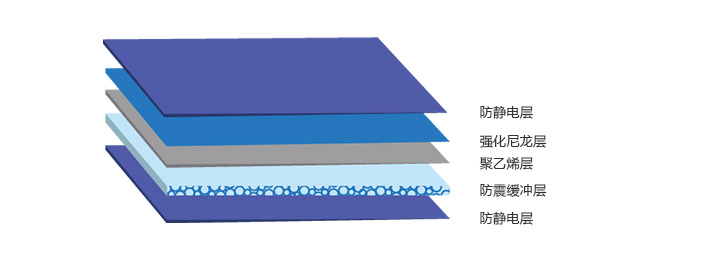 1.防靜電--外層阻值10 9-10ohm,內層阻值10 10-11ohm. 2.優(yōu)良阻隔性—水蒸氣透過率0.077g/100in 24H 3.減震效果好—避免內裝產品的鋒利棱角將外袋戳破,并對產品起到緩沖保護的作用 4.降低包裝成本—該新型產品結合了外層隔水隔氧可抽真空度的尼龍、聚乙烯復合的材質和內層EPE緩沖材質的優(yōu)點,降低了客戶的購買成本并提高了使用者的工作效率。